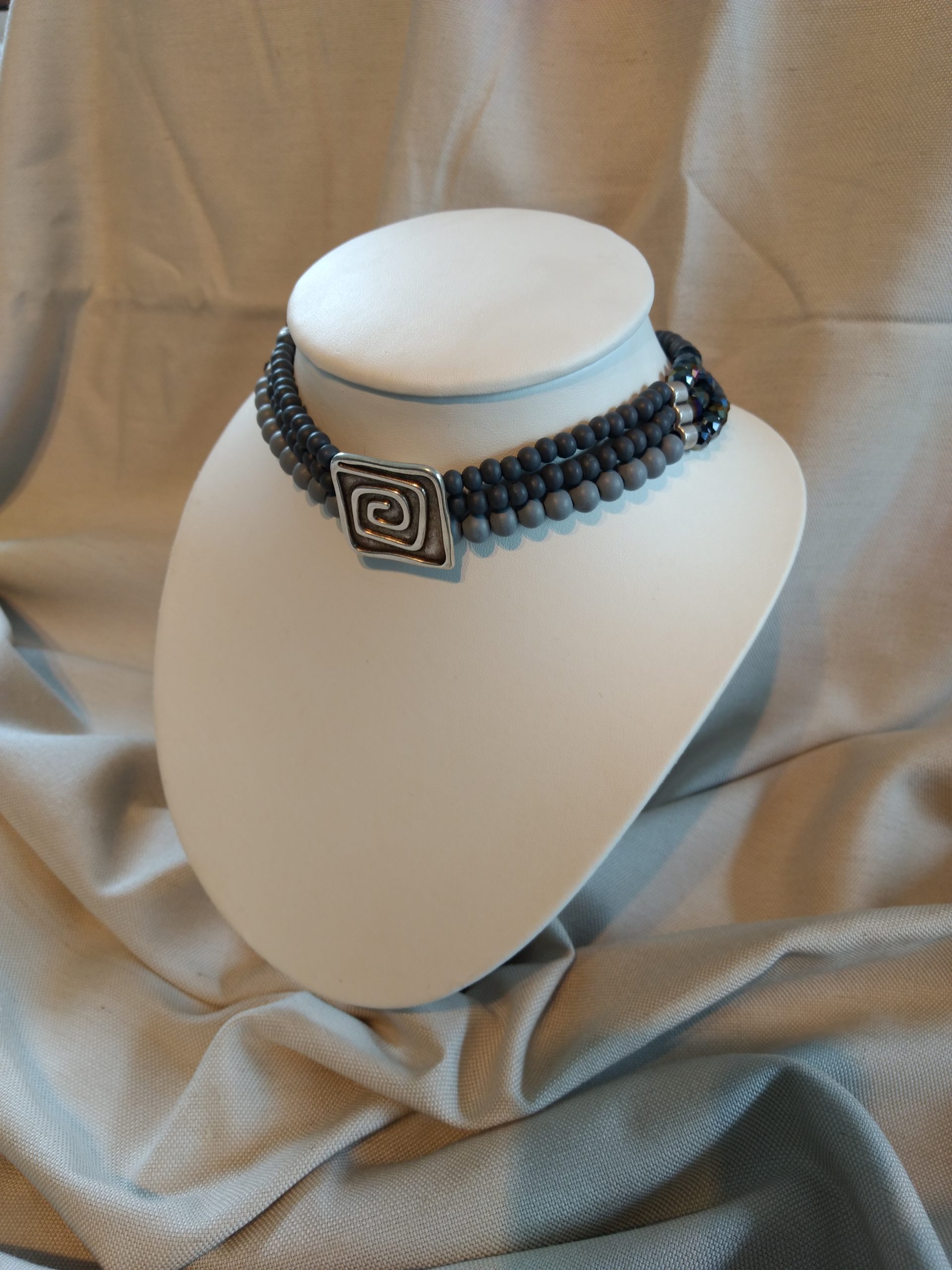 Eine wunderschöne Perlen-Trachten-Kette in grau Tönen passt zu jeder Art von Tracht. Die Kombination aus Holz und Glasperlen lässt die Kette neutral aber doch auffällig wirken.